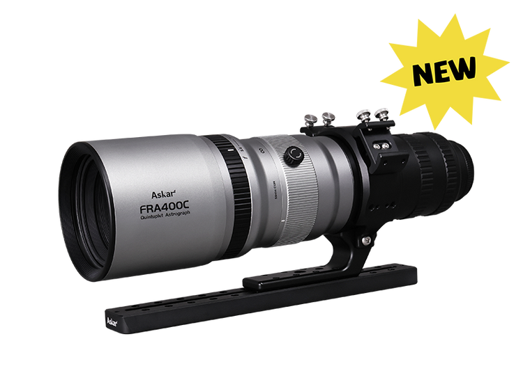 Il Askar FRA400C è un rifrattore apocromatico astrograph con diametro da 72 mm e lunghezza focale di 400 mm (f/5.6), sviluppato per l’astrofotografia wide-field. Grazie al progetto ottico a 5 elementi Petzval (quintupletto ED), con spianatore di campo integrato, il FRA400C offre immagini piatte e corrette su sensori full-frame, eliminando aberrazione cromatica e coma. Compatto e leggero, rappresenta una soluzione eccellente per chi cerca un telescopio performante e portatile per la fotografia del cielo profondo.