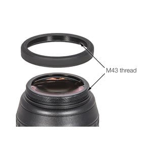 La prolunga M43 viene utilizzata per la regolazione estesa della distanza tra gli occhi e per il collegamento di fotocamere con filettatura M43. Caratteristiche di sicurezza : I tappi da 1,25" e 2" sono dotati del nuovo dispositivo antiscivolo Baader Safety Kerf. Questo crea un compromesso perfetto tra i ricettacoli lisci e le solite ampie scanalature di sicurezza. Le numerose piccole tacche creano molti punti di arresto quando gli oculari lisci stanno già scivolando, evitando al contempo i problemi, come l'inclinazione, che possono verificarsi con una scanalatura di sicurezza mal posizionata.