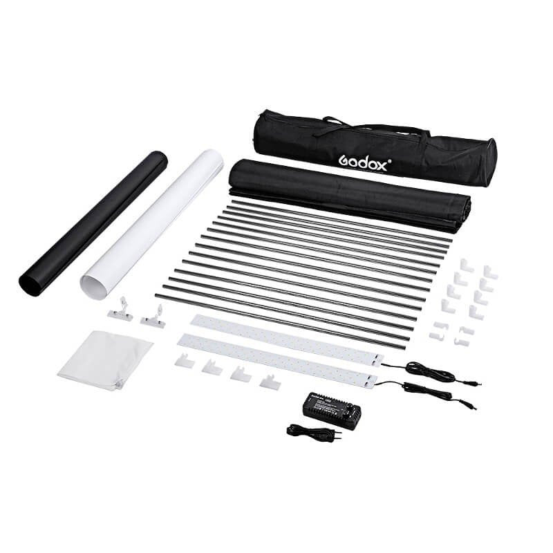 Questo box per le foto senza ombre, dall'interno argentato con la propria luce integrata (due strisce LED regolabili), fornisce l'illuminazione all'interno. Inoltre, è stato dotato di un diffusore, montato davanti alle sorgenti luminose a LED per rendere la loro luce più uniforme e morbida. I fori per la fotocamera sono stati realizzati su uno dei lati e sulla parte superiore del box. Per poter scattare le foto dall'alto il diffusore deve essere rimosso. L'apertura laterale è più grande ed è stata dotata di una doppia chiusura. La potenza dei LED può essere regolata in modo continuo e separatamente. Contenuto della confezione: box fotografico LSD80 completo di tutti accessori cablaggio scatola originale del prodotto.