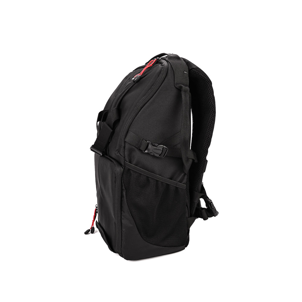 Lo scomparto superiore offre molto spazio per riporre i vostri effetti personali o l'attrezzatura fotografica come un caricabatterie o un flash report. Nella patta si trova una tasca a rete per piccoli accessori e nella parte posteriore dello scomparto si trova un'altra tasca a rete senza cerniera. Lo scomparto inferiore offre spazio per la tua DSLR compresi gli obiettivi. Il vano è apribile sia dall'alto che lateralmente. Puoi adattare questo scomparto interamente alle tue esigenze utilizzando i divisori rimovibili. Sul lato sinistro c'è una tasca con cerniera per piccoli accessori e sul lato destro c'è una tasca in rete aperta superiore. Sul retro si trova uno scomparto spesso imbottito per il trasporto sicuro di un laptop da 13". Inoltre in alto a destra si trova un passante per il fissaggio di un treppiede.