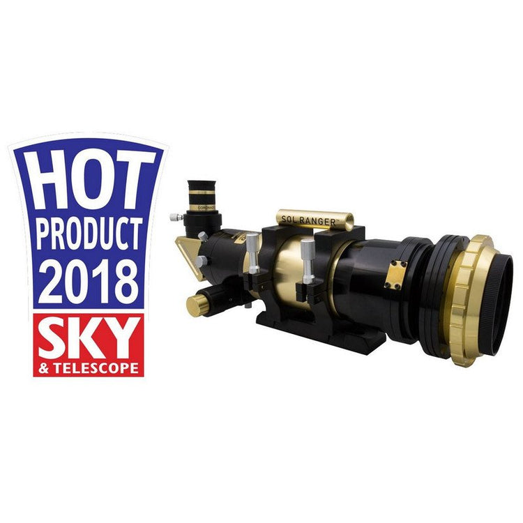 Sol Ranger: mettere a fuoco l'immagine del Sole con il telescopio è più impegnativo di quanto non si creda e spesso comporta involontarie occhiate alla nostra stella senza protezione! Il cannocchiale cercatore Sol Ranger è uno speciale cercatore solare con schermo opaco, che permette di orientare il vostro telescopio in modo facile, veloce e sicuro.