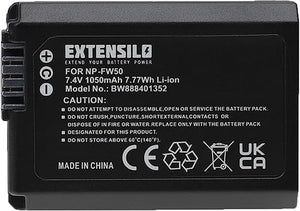 EXTENSILO batteria sostituisce Sony NP-FW50 per fotocamera digitale DSLR (1050mAh, 7,4V, Li-Ion)