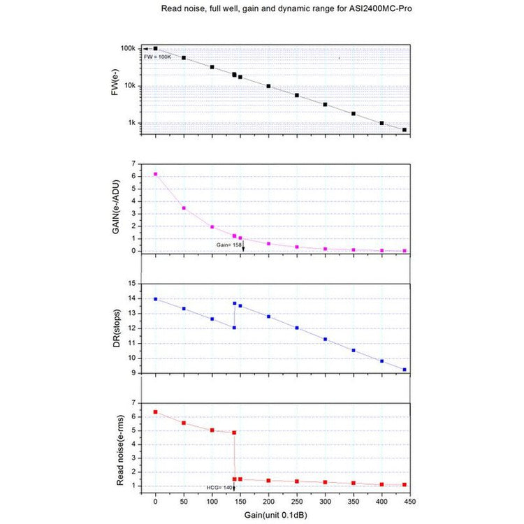 | Rumore di lettura | 1,1 – 3,9 e- (a seconda del gain) |