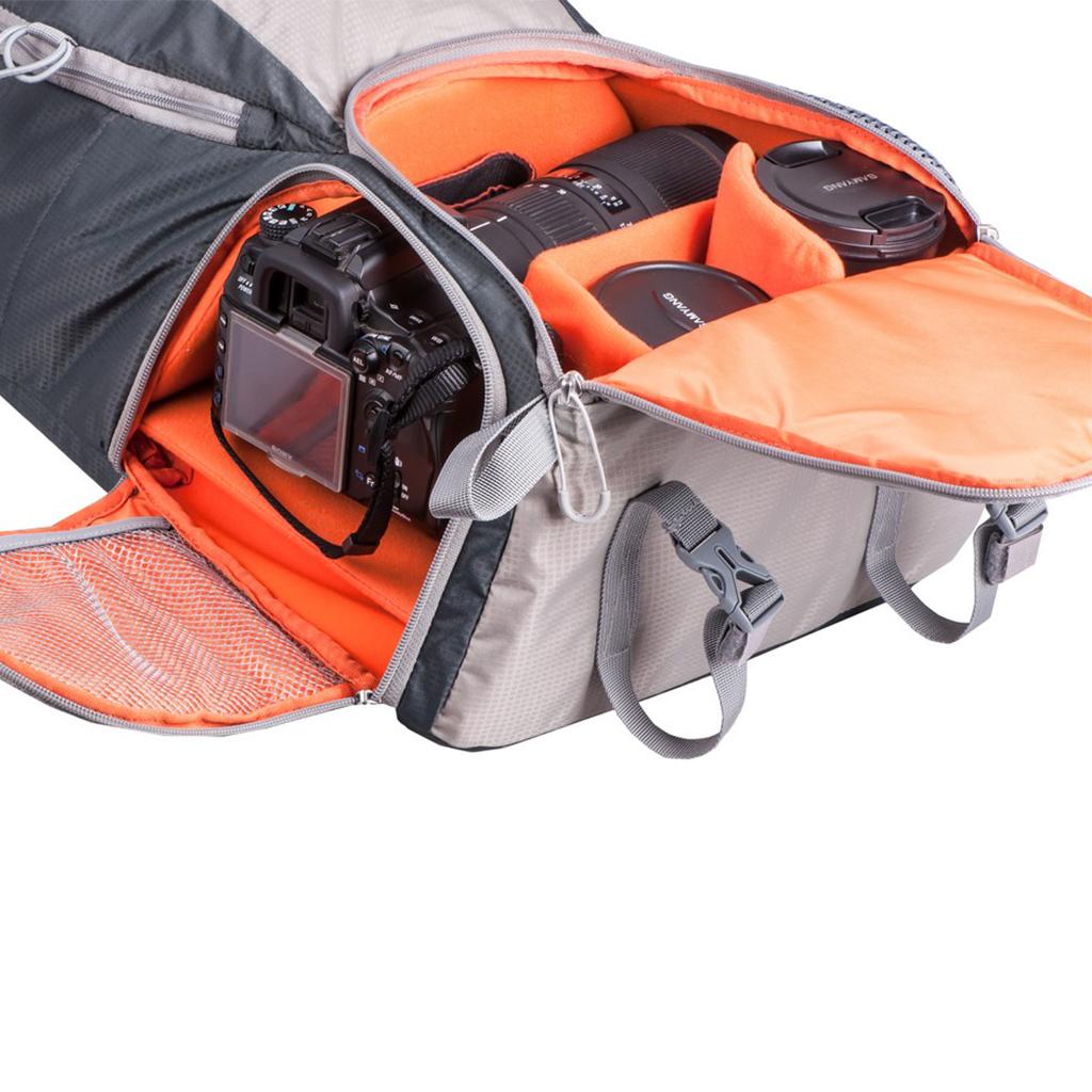 Genesis Nattai ospita una fotocamera reflex con un set di lenti. È inoltre possibile utilizzare Genesis Nattai se si utilizzano lenti grandi, come 70-200/2.8, che possono essere riposti nello zaino insieme ad una macchina fotografica. Troverete anche più spazio per il flash e la seconda lente, vale a dire 24-70/2.8. Lo zaino può anche essere usato per trasportare un computer portatile ( fino a 15 " ) o una compressa. È possibile accedere al vano della fotocamera tramite una apertura anteriore. Chiusura laterale può anche essere molto utile, in quanto permette di prendere facilmente il contenuto anche lateralmente