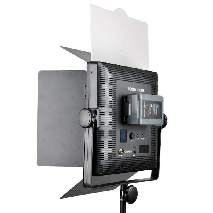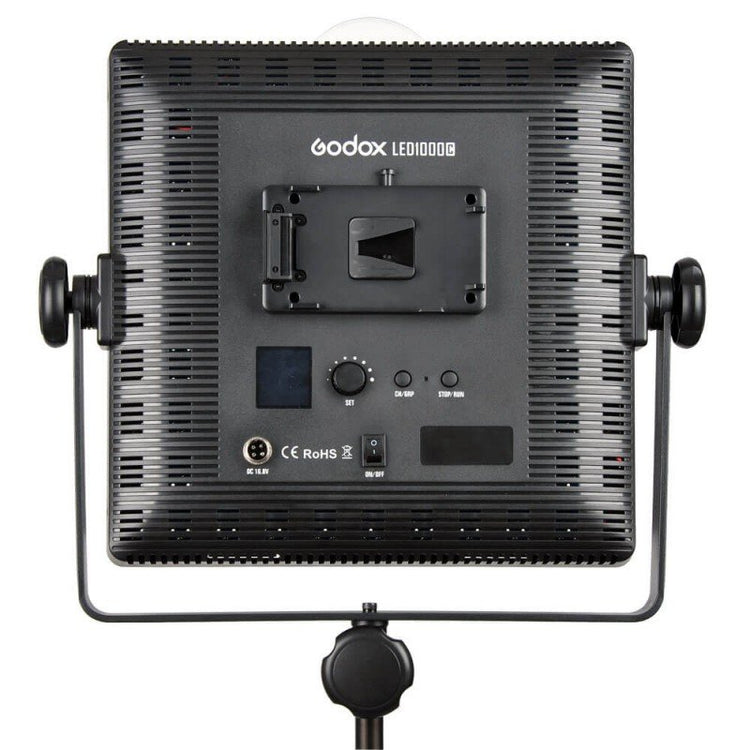 Il pannello di controllo sul retro della lampada fornisce tutte le informazioni rilevanti, come la luminosità, il canale insieme al gruppo, la temperatura della lampada. Inoltre Godox LED1000C è stato dotato di una pratica manopola per la regolazione della luminosità dal 10% al 100%. Questo pannello emette la luce di altissima qualità, senza effetto di sfarfallio e consente di regolare la temperatura colore nell'intervallo da 3300K a 5600K. Il pannello a Led può essere controllato da remoto, tramite il telecomando RC-A5 (disponibile separatamente), grazie al ricevitore incorporato. Questi dispositivi possono essere anche raggruppati e suddivisi sui diversi canali in modo altrettanto facile. Si possono impostare i parametri diversi per ogni dispositivo, per un gruppo di dispositivi oppure per tutti (incluso lo spegnimento). Questo pannello può essere alimentato tramite un adattatore di alimentazione da rete (incluso) o opzionalmente dalle batterie ricaricabili. Contenuto della confezione: pannello a LED Godox LED1000C scatola originale del prodotto.