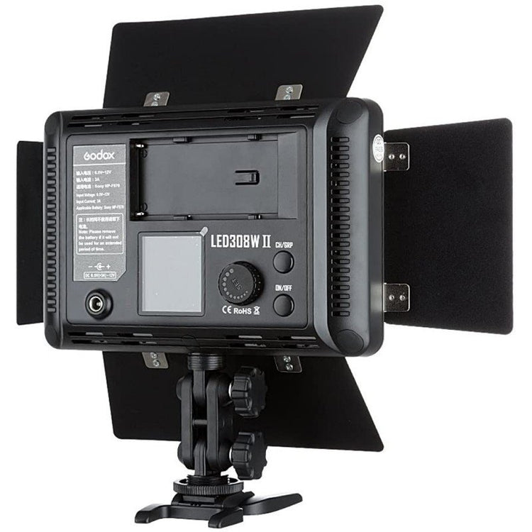 308IIW Il pannello a led Godox LED308IIW da 21W di potenza e dalla temperatura di colore di 5600K è un pratico dispositivo composto da 308 diodi LED che fornisce un'immagine luminosa. Versatilità Il pannello è stato dotato di una piastra incorporata per batterie della serie L (non incluse). Inoltre, può essere alimentato tramite un opzionale alimentatore (non incluso). La luminosità di questo dispositivo può essere regolata da 10% a 100%. Inoltre, tutte le impostazioni, come la temperatura del colore, la luminosità, la carica della batteria e il canale wireless selezionato, vengono visualizzate sullo schermo LCD integrato. Comodità Questo pannello può essere agganciato sull'attacco a slitta della fotocamera ed è inclinabile, il che consente di sistemarlo e poi bloccarlo in posizione desiderata. Il dispositivo è stato dotato delle alette frangiflusso rimovibili per il controllo del fascio luminoso. Inoltre, questo pannello è predisposto per l’inserimento dei filtri (il filtro di diffusione incluso, i filtri colorati sono disponibili separatamente). Controllo remoto Il pannello e il telecomando wireless (acquistabile separatamente) comunicano alla frequenza di 433MHz. Puoi scegliere tra 16 canali e controllare fino a sei gruppi di dispositivi di illuminazione. Inoltre, è possibile regolare la luminosità del dispositivo direttamente sul pannello posteriore o tramite il telecomando in modalità wireless. Contenuto della confezione: pannello Godox LED308IIW 5600K impugnatura basamento filtro di diffusione scatola originale del prodotto.