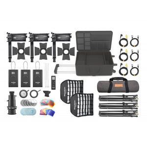 Kit S60-D Per gli utilizzatori più esigenti Godox ha preparato questo set di 3 illuminatori S60 che offre a tutti coloro una soluzione di illuminazione completa. Questo kit è composto da tre illuminatori S60 da 5600K, ognuno dotato di frangiflusso, controller e stativo. Inoltre, questo kit è composto da una borsa per stativi e due softbox. Per ottenere diversi effetti creativi, dall'illuminazione selettiva alla proiezione dei diversi motivi, è stato incluso anche il cilindro di proiezioni insieme alla lente da 85mm (accessori compresi). Inoltre, in questo kit sono stati inclusi pure il diaframma, i gobo con il relativo supporto, il set dei filtri colorati e quelli di correzione della temperatura colore. Oltre a tutto ciò questo kit è stato dotato anche di un pratico telecomando RC-A6 dalla portata fino a 50m. S60 Illuminatore a LED Godox S60 è uno dei pochi dispositivi dotati di messa a fuoco regolabile. Può emettere il fascio luminoso dall'angolazione compresa tra 6° e 55°, quindi può essere utilizzato come la luce spot per far risaltare una piccola area, i capelli o per illuminare i soggetti distanti dalla scena. Impostando a 55° si può facilmente illuminare un intero palco o un gruppo di persone. Inoltre, grazie al frangiflusso è possibile modellare ulteriormente la luce. Caratteristiche La temperatura del colore di S60 è costante (di 5600K), invece la potenza è regolabile da 0% a 100% e può essere impostata direttamente sul dispositivo oppure da remoto dalla console DMX, dal tablet o smartphone tramite l’applicazione Godox Light o con utilizzo di un opzionale telecomando. Un preciso controllo della luce Per impostare la diffusione della luce desiderata, con una semplice rotazione della manopola posizionata sul retro dell’illuminatore, possiamo regolare l'angolo del fascio luminoso da 6° a 55°. Volendo ottenere un controllo sulla luce ancora maggiore è possibile utilizzare il cilindro di proiezioni (con le lenti dedicate). Effetti di luce eccezionali La lente asferica assicura all’illuminatore S60 i valori degli indici CRI superiore a 96 e TLCI superiore a 97 garantendo i colori naturali e impeccabili in ogni utilizzo. Inoltre, per consentire il controllo più flessibile in qualsiasi condizioni, la luminosità può essere regolata da 0 a 100%. Modificatori di luce Questo illuminatore è stato progettato pensando ad una vasta gamma di utilizzo. Grazie ai diversi accessori per la modellazione della luce come: frangiflusso, diaframma, softbox o gobo è possibile personalizzare l'illuminazione in modo da soddisfare qualsiasi esigenza. Un'illuminazione uniforme La lente asferica garantisce una diffusione della luce uniforme da un bordo all’altro. Potenza ovunque S60 è stato dotato di un controller esterno di alimentazione da rete fissa CA con possibilità di utilizzare opzionalmente una batteria con attacco a V (V-mount) p.es. durante i servizi in esterna. Controllo S60, grazie al bluetooth integrato, può essere facilmente gestito dall'applicazione Godox Light o tramite il telecomando RC-A6. Contenuto della confezione: 3 x illuminatore a LED Godox S60 3 x stativo 2 x softbox 1 x set di filtri a rete 1 x diaframma 1 x set di alette 1 x set di Gobo 1 x supporto per Gobo 1 x set di filtri colorati 1 x set di filtri di correzione della temp. colore 1 x cilindro di proiezioni con lente da 85mm 1 x telecomando RC-6 1 x borsa per stativi.