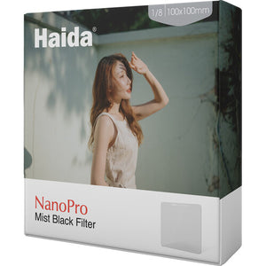 Il filtro NanPro Mist Black 1/8 è progettato per adattarsi a uno qualsiasi dei tre slot per filtri quadrati sulla parte anteriore del supporto per filtro M10 di Haida , venduto separatamente. Il filtro consente di ottenere un effetto pastello. Riduce le alte luci e il contrasto generale. È realizzato in vetro ottico e misura 100 x 100 mm quadrati e 2 mm di spessore ed è multistrato per la protezione. Sono incluse una leggera guarnizione di tenuta e una custodia in metallo.