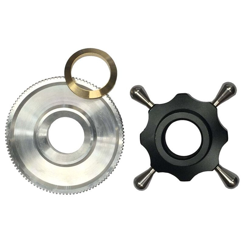 Designed for iOptron AZ Mount Pro, this Altitude Gear and Clutch upgrade kit can be used to replace the altitude gear/clutch of an iOptron MiniTower Pro/MiniTower II. The tapered surfaces on ring gear and brass washer will translate the applied axial pressure into both axial and radial pressure to provide better locking power of the altitude clutch. The locking knob with levers will make the altitude knob easy to tighten, especially during the winter time.