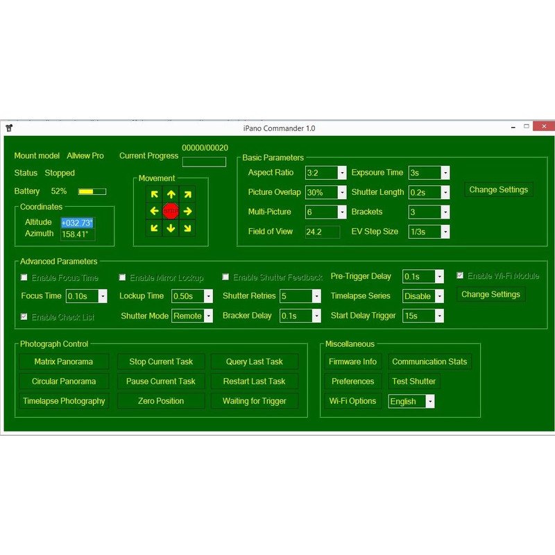 La montatura iPano si basa sul design astronomico di iOptron. La montatura è abbastanza precisa, robusta e facile da usare. L'adattatore WIFI integrato consente il funzionamento senza fili e le operazioni in rete della montatura o di un array di montature.