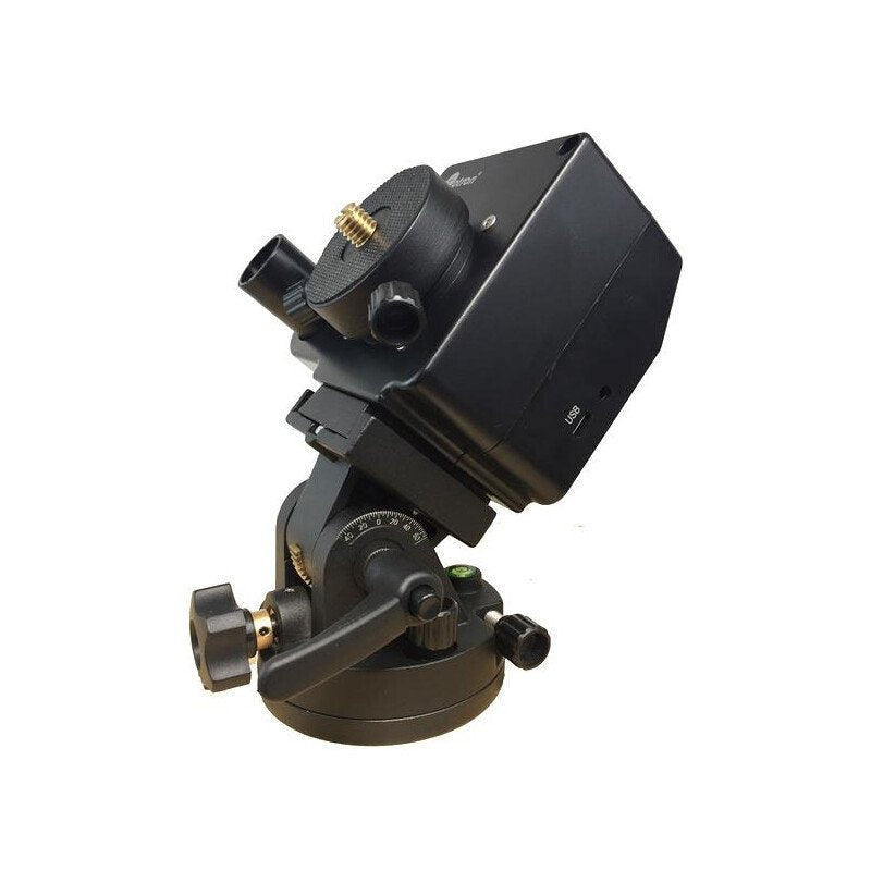 - una base che, oltre a essere regolabile in altezza e in azimut, è rimovibile; questo permette di posizionare l'inseguitore SkyTracker Pro su un treppiede fotografico; l'innesto della base è compatibile con i comuni innesti fotografici da 1/4" e 3/8"