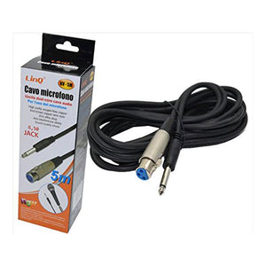 Linq cavo microfonico XLR Maschio - Jack 6.5mm Femmina lunghezza 5 mt. Uscita dual core cavo audio, utilizzabile con: microfoni e attrezzature professionali, per il collegamento tra mixer, amplificatori, equalizzatori, e recoder digitali.