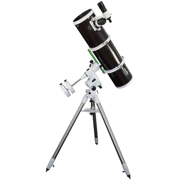 Telescopio Sky-Watcher Newton Explorer diametro 200mm e lunghezza focale 1000mm (f/5) su montatura equatoriale alla tedesca Sky-Watcher EQ5 dotata di treppiede d’acciaio regolabile. Il migliore strumento manuale della gamma di telescopi completi Sky-Watcher.