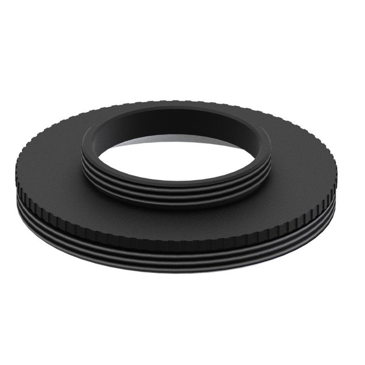 Adattatore per fotocamere con raccordo passo C verso raccordi M42; poiché è standard, permette l'impiego di ulteriori raccordi.