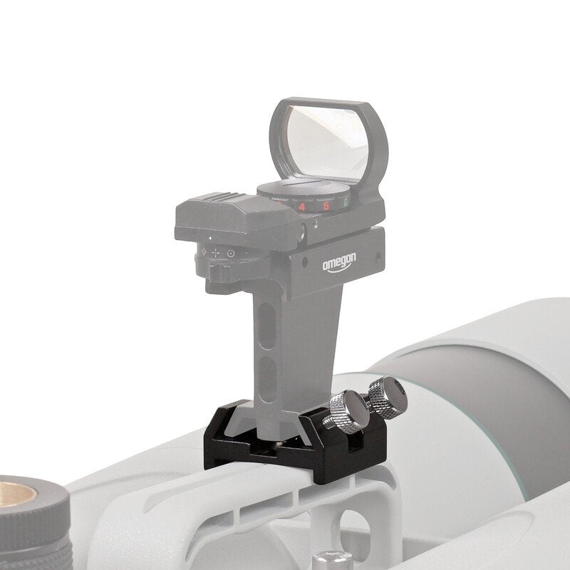 Con la base di supporto per cercatore Omegon potrete ora fissare ogni tipo di cercatore al vostro telescopio. Il profilo dell'aggancio è lo standard in uso presso molti produttori. Adatto anche ai telescopi piccoli: sostituite semplicemente la base preesistente con questa e sarete in grado di utilizzare anche grandi cercatori, individuando gli oggetti celesti ancora più velocemente.