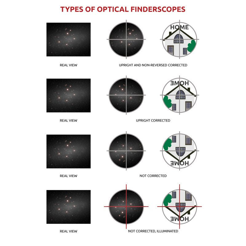 L'apertura del cercatore è di 50 mm, per cui è particolarmente luminoso. Oggetti che non si riescono a vedere ad occhio nudo, potranno essere subito individuati. Anche quando cercate oggetti luminosi dello spazio profondo, appariranno davanti ai vostri occhi e non saranno più celati.