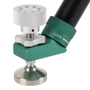 Conoscete la situazione: non troverete mai una superficie perfettamente piana su un terreno qulasiasi. Ciò che è facile con un treppiede può diventare una sfidadifficile con una colonna mobile. Ma con la colonna Omegon Pro è possibile configuare l'intero telescopio in modo preciso. . Ciò è garantito da un sistema di livellamento con piaste mobili e viti regolabili in altezza e bloccabili per tutte le gambe della colonna. Naturalmente tutti i componenti non arruginiscono e sono sempre a prova della rugiada del prato.