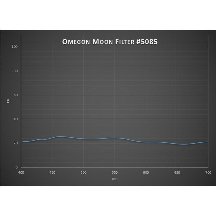 Abbiamo misurato una trasmissività del 30% (corrisponde ad uno spessore ottico di ND05). Pertanto il filtro è indicato per telescopi con un diametro più piccolo. Per telescopi di ad es. 200mm è più consigliabile un filtro con un po' meno di trasmissività (ad es. 13%). In questo caso consigliamo filtro grigio Omegon. Unagrande flessibilità si ottiene con un filtro polarizzatore variabile.