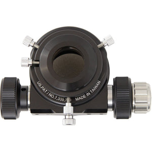 Con elevati ingrandimenti oppure in astrofotografia è difficile trovare l'esatto punto di messa a fuoco. Grazie alla demoltiplicazione millimetrica questo è possibile. Non appena si ruota la maneggevole ghiera in acciaio inossidabile, il tubo da 2" si muove di un decimo di millimetro. Mezza rotazione della ghiera corrisponde quindi a un'escursione del focheggiatore di circa un millimetro.