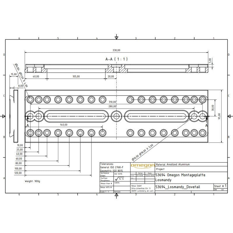 Omegon Piastra di montaggio lunga (stile Losmandy)