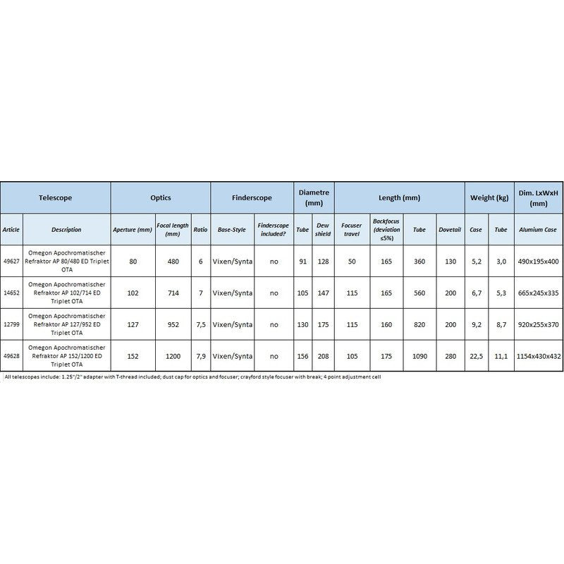 Omegon Rifrattore Apocromatico Pro APO AP 152/1200 ED Triplet OTA
