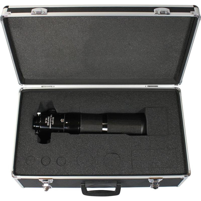 Questo apocromatico è adatto per l'osservazione visuale, ma viene specificamente utilizzato per l'astrofotografia. Approfittate dei vantaggi del tubo di carbonio: è particolarmente leggero e perciò ideale anche per piccole montature. Il tubo vi offre inoltre un'elevata stabilità e solo minimi sbalzi di temperatura. Caratteristiche molto utili all'astrofotografo: la messa a fuoco rimane stabile, anche tutta la notte. Anche la fascia antirugiada è in carbonio e facilmente estraibile. Inoltre è avvolta in un feltro nero.