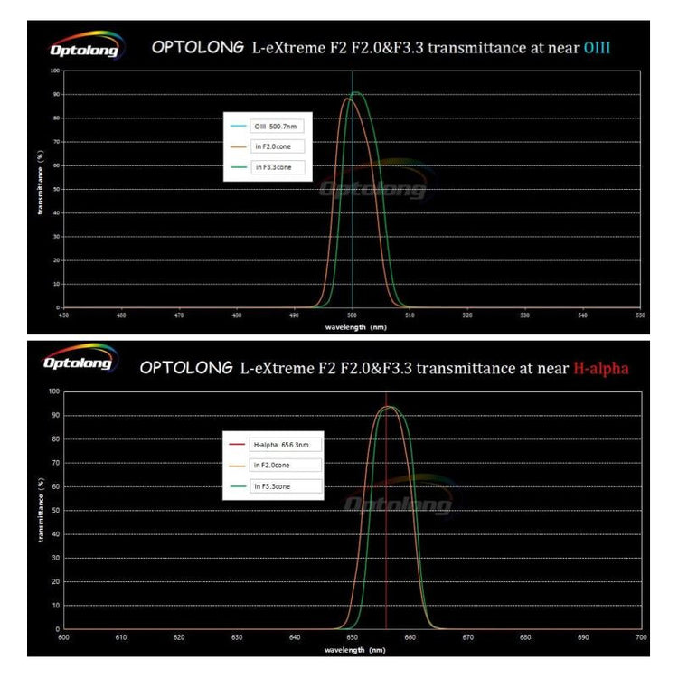 L'Optolong L-eXtreme è un filtro da 7nm a doppia bandapassante che può essere utilizzato con fotocamere a colori a scatto singolo, come le DSLR (fotocamere digitali reflex a obiettivo singolo) e le telecamere CCD monocromatiche. È anche adatto a sistemi ottici "veloci".