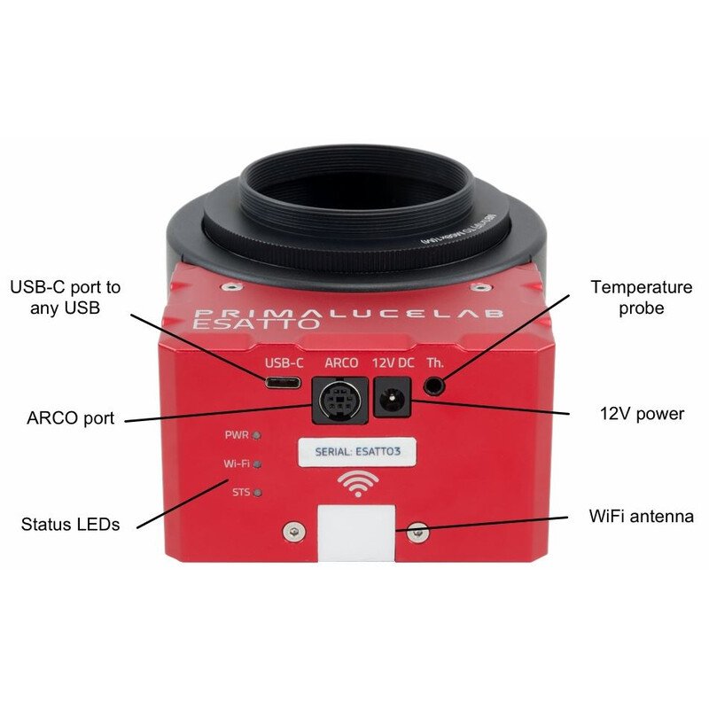 ESATTO è stato appositamente progettato per un facile controllo remoto e per consentire al tuo telescopio di sfruttare tutte le ultime tecnologie in astrofotografia. ESATTO è dotato di una robusta porta USB-C (è possibile collegare ESATTO a qualsiasi porta USB grazie al cavo incluso nella confezione) per collegarsi a EAGLE o a qualsiasi computer Windows e controllarlo tramite il software ESATTO o il driver ASCOM in dotazione. Quando è collegato a una delle porte USB 3.0 di EAGLE (o a porte USB 3.0 di computer Windows in grado di fornire almeno 1A), ESATTO può essere alimentato e controllato tramite questo unico cavo!