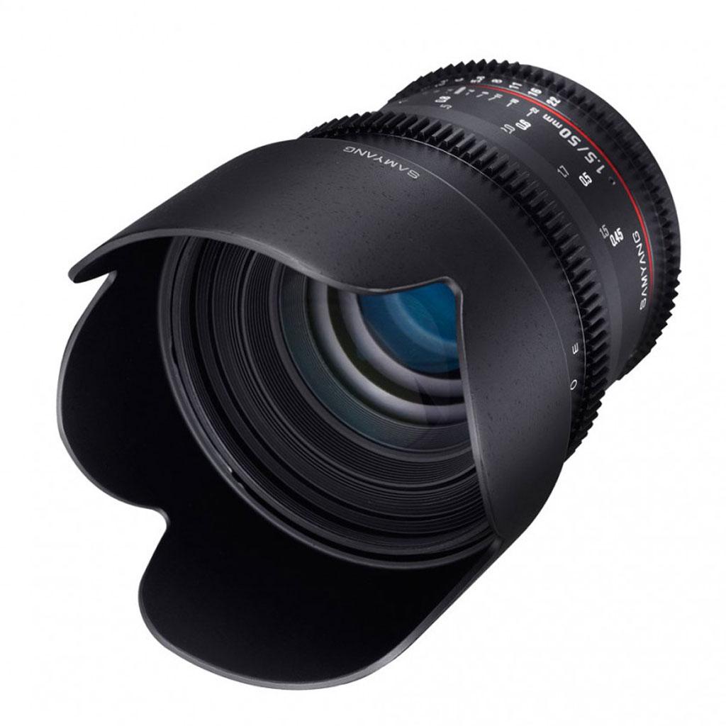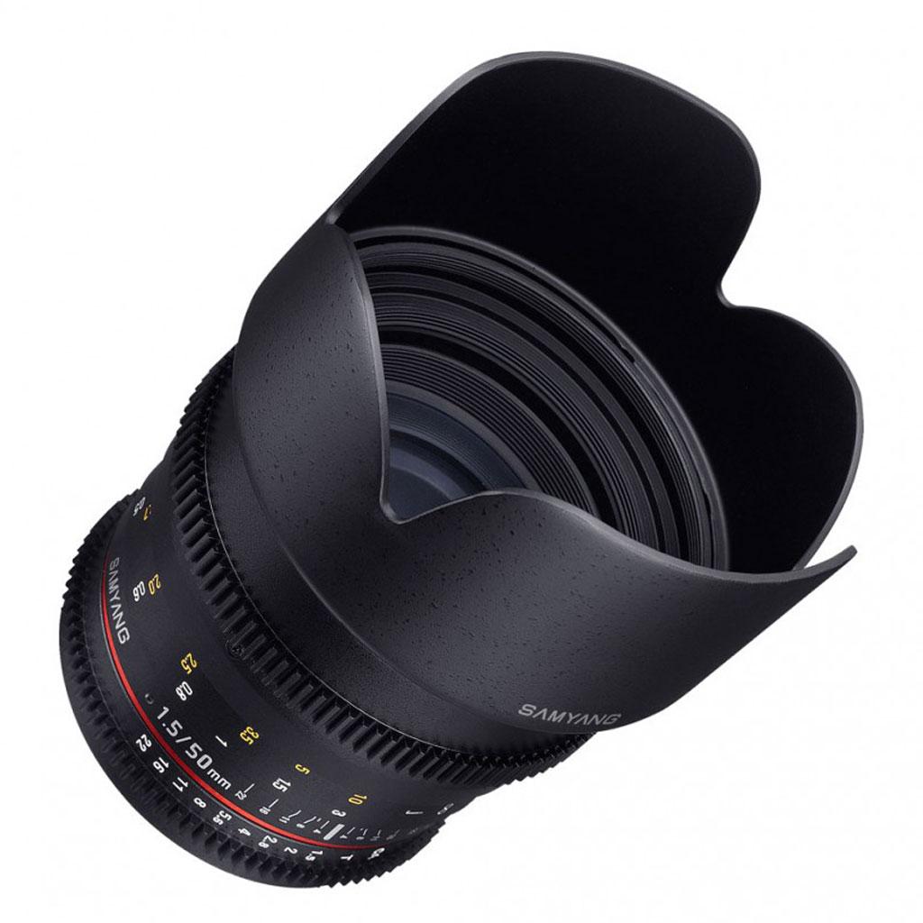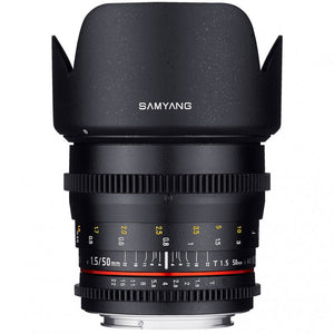 La lente Samyang 50mm T/1,5 VDSLR AS UMC è un obiettivo medio-tele, ideato per camere con sensore a formato pieno Full-frame (FX). È stata progettata con attenzione per riprese video professionali, dotandola già di ghiere dentate per aggancio diretto al follow focus. L'apertura del diaframma può essere gestita in modo silenzioso e fluido, grazie alla ghiera libera senza gli scatti delle lamelle. Il numero abbinato alla T indica la quantità di luce trasmessa. La lente lavora in un sistema di apertura manuale con un basso valore di T, garantendo una ripresa migliore in tutte le situazioni.