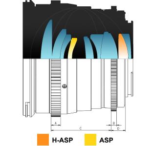 Questo obiettivo è formato da 9 lenti in 6 gruppi, includendo 1 lente asferica (AS) ed 1 lente asferica ibrida (H-ASP), le quali minimizzano le aberrazioni cromatiche per realizzare immagini eccezionali nella qualità e ad elevato contrasto dal centro agli angoli della stessa, anche quando il diaframma è totalmente aperto. La protezione Ultra Multi Coating (UMC) ottimizza la luce entrante nell'obiettivo, minimizzando il flare ed il ghost.