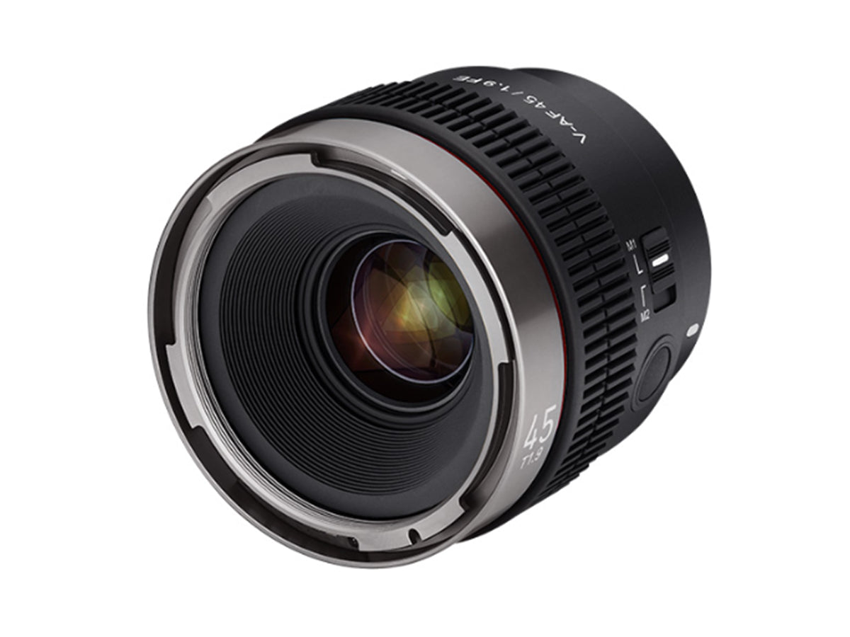 V-AF 45mm T1.9 FE, offre ai content creator una migliore usabilità con una lunghezza focale standard. Oltre ai già esistenti 24 mm, 35 mm e 75 mm, questo obiettivo è adatto a molti tipi di videografia, dai creatori di video singoli alle piccole produzioni e ai registi.
