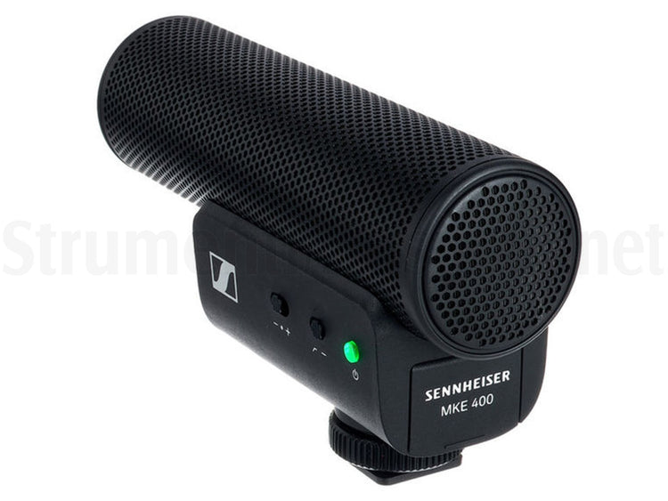 L'MKE400 è un microfono electret, supercardioide adattabile alla slitta flash, completo di antivento e cavo di collegamento. E' dotato di chassis in metallo estremamente leggero, sensibilità regolabile per adattarsi alle più diverse videocamere. Alimentazione con batteria da 1,5V di tipo AAA per un autonomia di circa 300 ore.