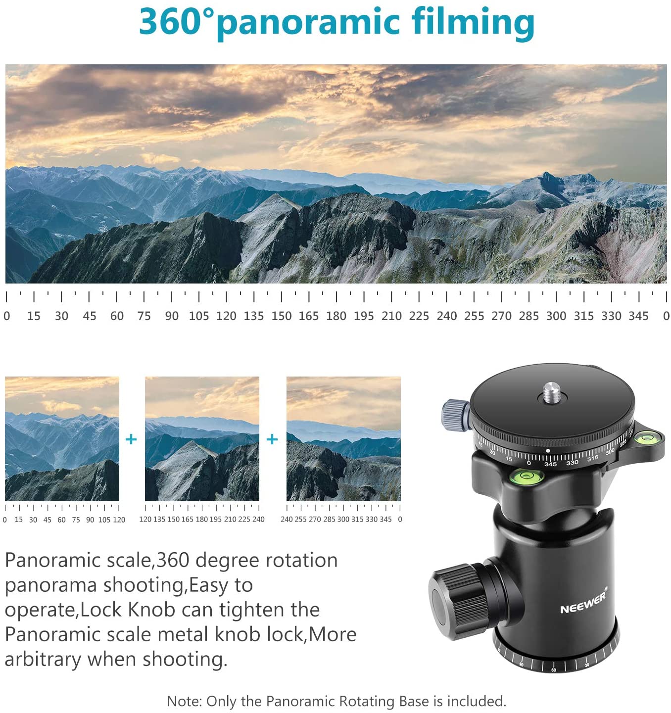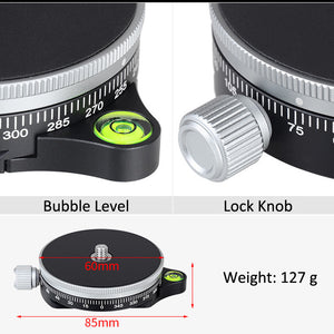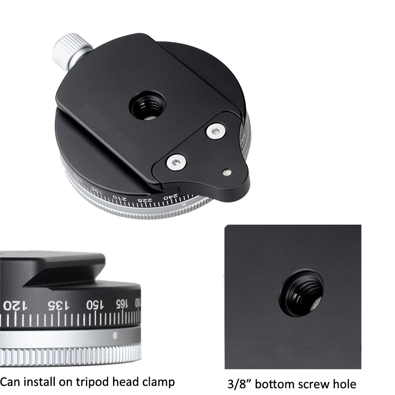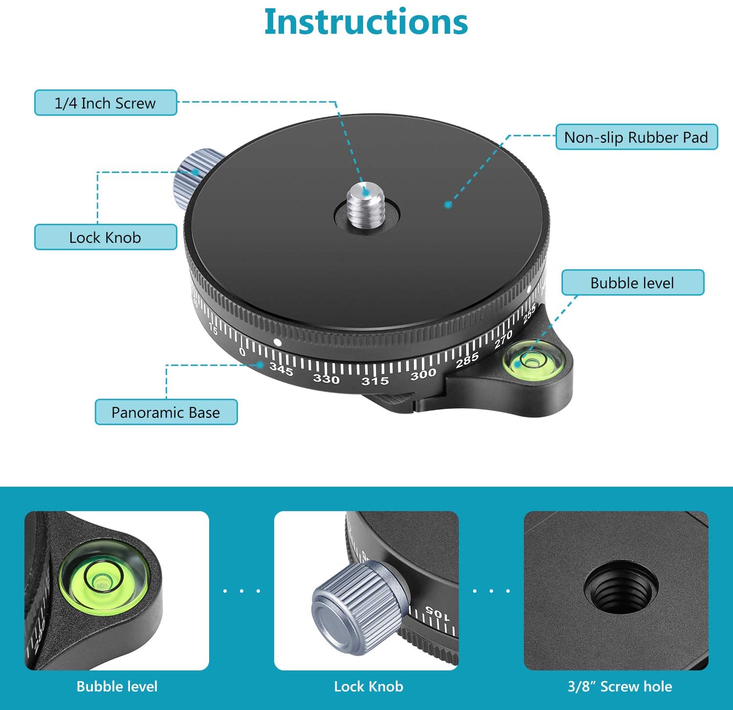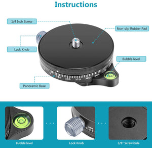 La base panoramica è un accessorio ideale liberamente ruotabile per ottenere gli scatti impressionanti. Può essere usata con quasi tutte le teste a sfera e le prese, e grazie al design piatto e stabile, viene pure montata su un treppiedi o un’altra testa a sfera.