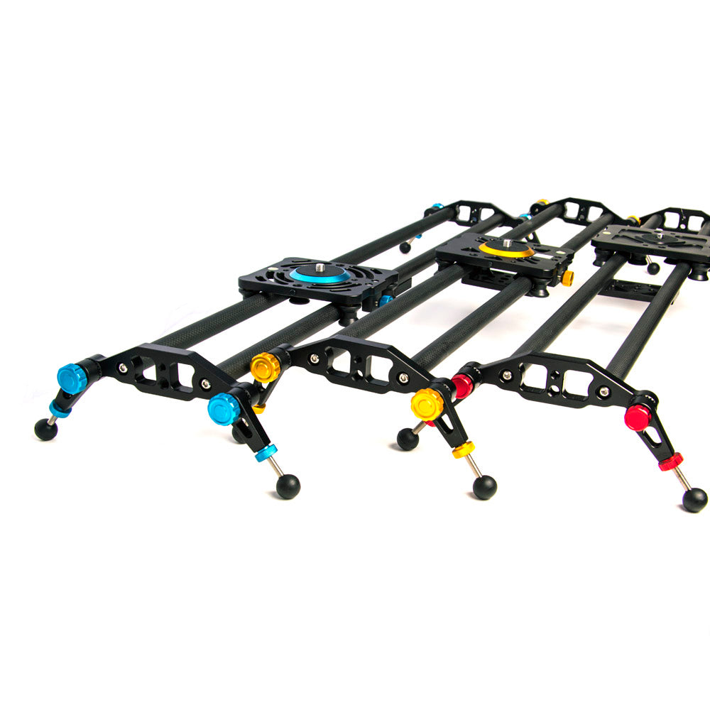 Interamente realizzato in alluminio CNC e con barre in fibra di carbonio, questo slider può aggiungere una nuova dimensione alle vostre riprese con un ingombro e peso minimo nel trasporto.