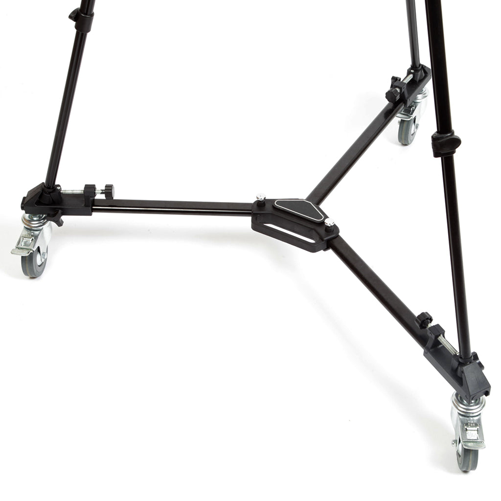 Pratico dolly universale per qualunque tipo di cavalletto. Richiudibile e con una pratica maniglia per un trasporto agevolato. Clamp a vite per il blocco del cavalletto. Ruote direzionali con blocco rapido.