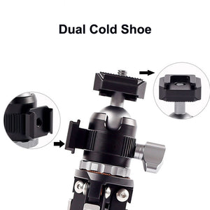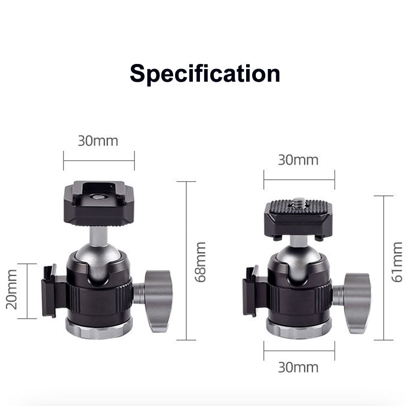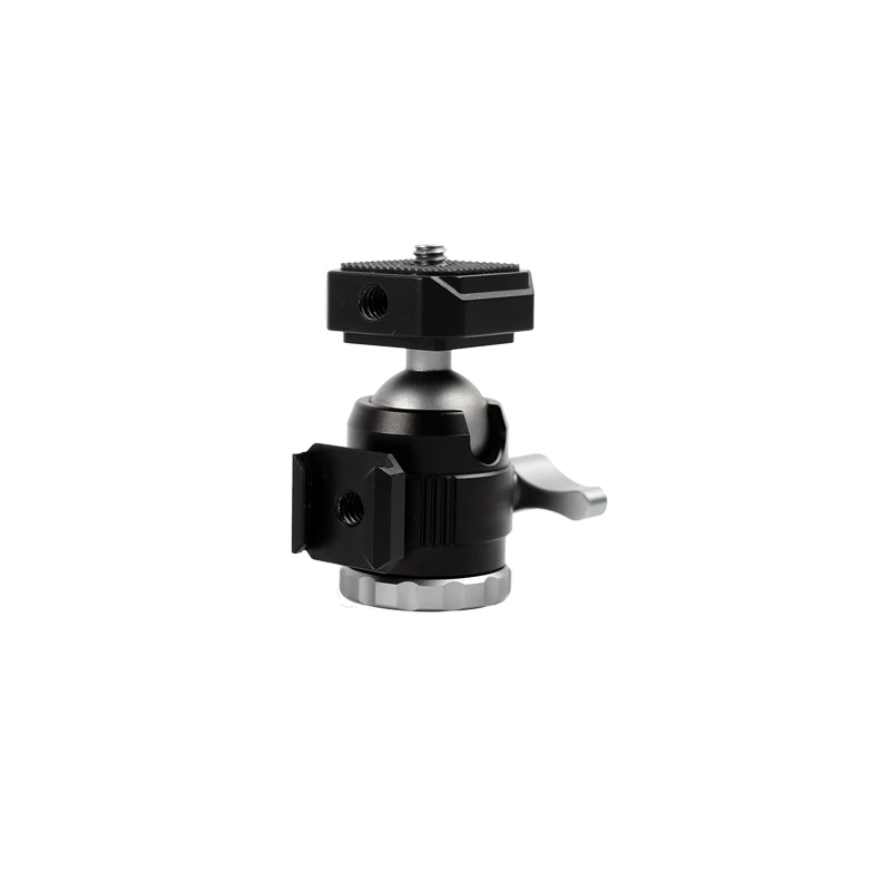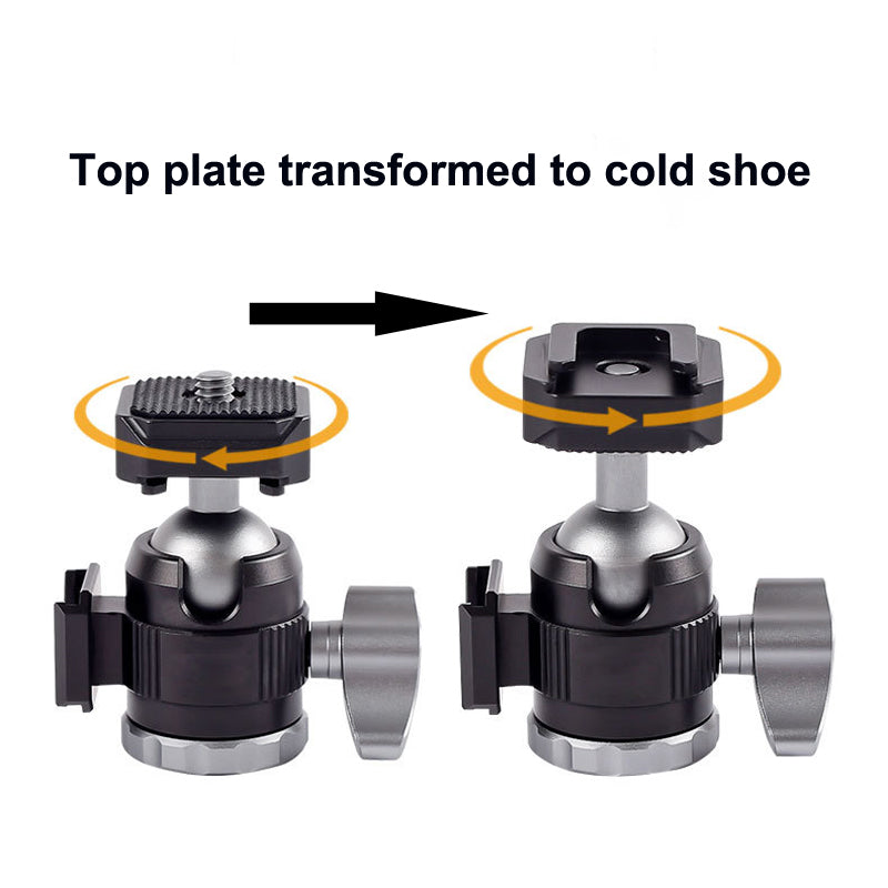 1. Design 2 in 1: gli accessori sulla parte superiore della testa a sfera possono essere facilmente commutati sul supporto per scarpe fredde. Quindi può essere montato per adattarsi alla maggior parte delle fotocamere/videocamera/smartphone.