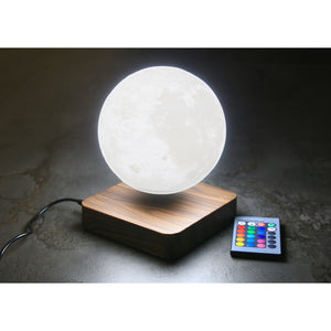 Specifiche Tecniche Diametro: 14cm Rappresentazione 3D realistica della superficie lunare Luce LED a 16 colori selezionabili Alimentazione wireless a induzione (Batterie non necessarie) Telecomando per il controllo delle modalità di illuminazione Pulsante di accensione/spegnimento sulla base Altezza di levitazione: 1.2-1.5 cm Alimentatore: 220/12V 1A Base in ABS color legno chiaro Dimensioni Base: 13.5cm x 13.5cm x 2.8cm Peso: 1.2Kg