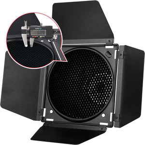 Godox BD-04 Barn Door in metallo e griglia a nido d'ape e 4 filtri gel colorati, attacco bowens