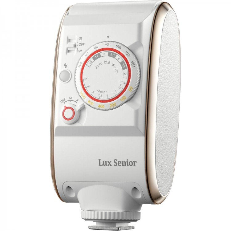 Lux Senior Godox Lux Senior è un flash esterno dalla forma unica che assomiglia ad un'opera d'arte. È un'immensa fonte di ispirazione ogni volta che lo apri. Quando scatti con Lux Senior tieni in mano il connubio dello stile di una volta con la tecnologia del futuro. Un bulbo flash unico Il dispositivo chiuso è della grandezza di un telefono delle medie dimensioni che porti sempre con te. Quando lo apri, invece, si trasforma in una macchina del tempo che ti porta in un viaggio attraverso la storia della fotografia offrendo degli effetti di luce particolari. Semplicità Lux Senior dispone di due modalità di controllo della luce: automatica e manuale. Puoi scegliere la modalità A per dimenticarti delle impostazioni e concentrarti esclusivamente sugli scatti o la modalità M per avere il pieno controllo dell'esposizione. Funzioni Le funzioni di attivazione includono la modalità ottica con le impostazioni S1 e S2. In modalità S1 il flash si attiva in risposta a un altro flash manuale o TTL, mentre in modalità S2 il flash risponde in modo simile, ma ignora il primo flash (pre-flash). Il Godox Lux Senior è stato dotato di porta ingresso jack SYNC (cavo incluso). Contenuto della confezione: flash Godox Lux Senior custodia cavo di sincronizzazione SYNC cavo USB scatola originale del prodotto.