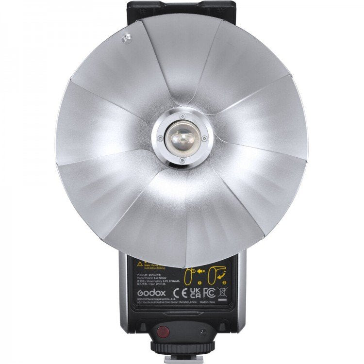 Lux Senior Godox Lux Senior è un flash esterno dalla forma unica che assomiglia ad un'opera d'arte. È un'immensa fonte di ispirazione ogni volta che lo apri. Quando scatti con Lux Senior tieni in mano il connubio dello stile di una volta con la tecnologia del futuro. Un bulbo flash unico Il dispositivo chiuso è della grandezza di un telefono delle medie dimensioni che porti sempre con te. Quando lo apri, invece, si trasforma in una macchina del tempo che ti porta in un viaggio attraverso la storia della fotografia offrendo degli effetti di luce particolari. Semplicità Lux Senior dispone di due modalità di controllo della luce: automatica e manuale. Puoi scegliere la modalità A per dimenticarti delle impostazioni e concentrarti esclusivamente sugli scatti o la modalità M per avere il pieno controllo dell'esposizione. Funzioni Le funzioni di attivazione includono la modalità ottica con le impostazioni S1 e S2. In modalità S1 il flash si attiva in risposta a un altro flash manuale o TTL, mentre in modalità S2 il flash risponde in modo simile, ma ignora il primo flash (pre-flash). Il Godox Lux Senior è stato dotato di porta ingresso jack SYNC (cavo incluso). Contenuto della confezione: flash Godox Lux Senior custodia cavo di sincronizzazione SYNC cavo USB scatola originale del prodotto.