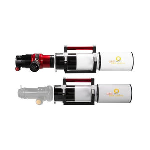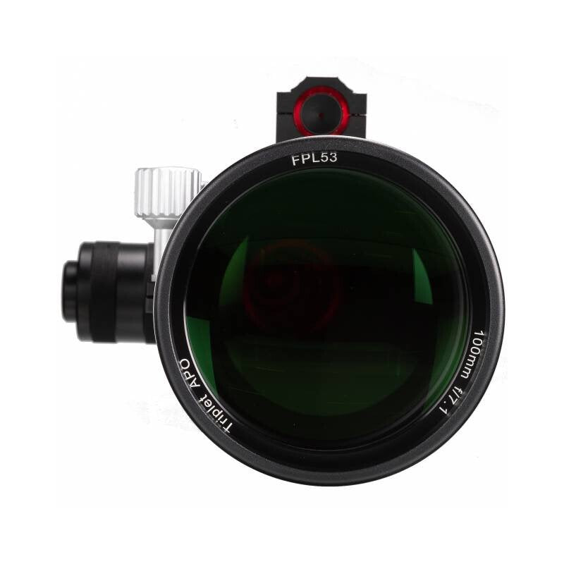 In abbinamento alle ottiche di alta qualità, il telescopio viene fornito con un focheggiatore Feather Touch di Starlight Instruments. Non c'è niente di meglio! Il focheggiatore consente di collegare accessori con attacco da 2", ad esempio uno specchio zenitale o un adattatore per fotocamera. Per l'osservazione solare è assolutamente necessario il filtro di blocco, integrato in modo permanente nell'ottica di deflessione fornita in dotazione. Ciò consente l'adattamento di oculari con attacco da 1,25" o il collegamento fisso a vite di una fotocamera con filettatura T2.