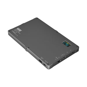 La lampada Newell RGB-W Rangha Max LED con le sue dimensioni assomiglia a un piccolo tablet o calendario tascabile. La leggerezza del dispositivo e le piccole dimensioni vi permetteranno di inserirlo in quasi tutte le borse fotografiche. L'alloggiamento in alluminio di grado aeronautico fornirà una protezione ottimale in tutte le condizioni. Il dispositivo offre anche tre filettature da ¼ di pollice. Grazie ad essi è possibile installare facilmente il flash su un treppiede, una gabbia o un rig, così come collegarlo ad accessori aggiuntivi come microfoni, registratori audio o schermi di anteprima.