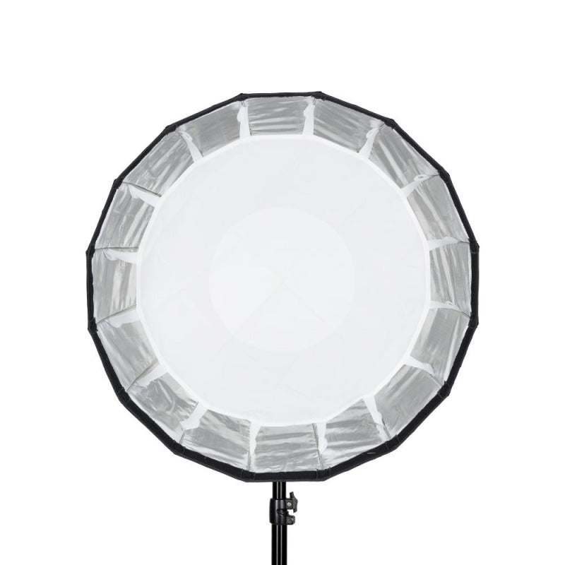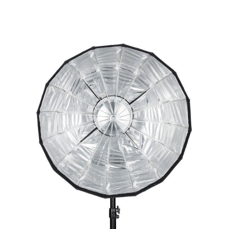 Grazie al suo profilo sferico questo modificatore di luce è estremamente efficiente e portatile. Soprattutto in spazi ristretti, stanze e corridoi, fornisce la luce esattamente dove la desideri. Se necessario, può essere utilizzato anche con griglia (acquistabile separatamente) per un migliore controllo della luce.