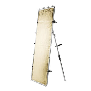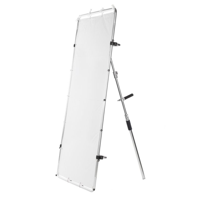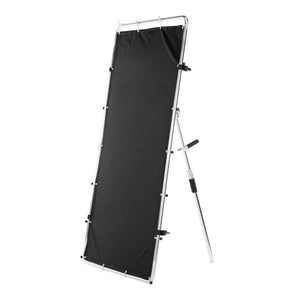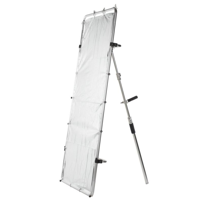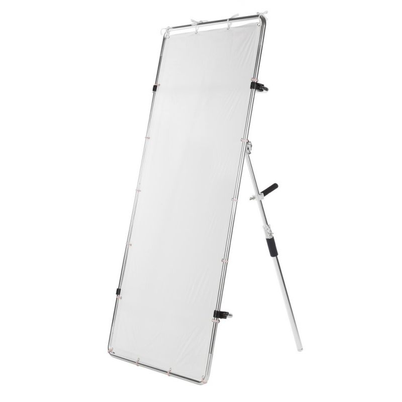 Quadralite Frame Reflector Kit è un grande riflettore su un telaio in alluminio, che può essere uno strumento estremamente utile per lavorare con la luce riflessa non solo in studio ma anche all'aperto. Il suo schermo misura 120 x 200 cm ed è sganciato su un telaio in alluminio con un diametro di 25 mm. Questo design consente un'illuminazione precisa dell'oggetto fotografato in modo molto più conveniente ed efficace rispetto al caso di miscele più economiche e più piccole con una struttura flessibile. Quadralite Frame Reflector Kit è un set confezionato in una comoda borsa contenente una cornice e un set di cinque schermi: