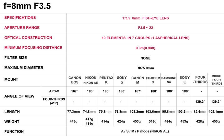 Samyang Obiettivo 8mm f/3,5 SOLO APS-C + adattatore Sony E
