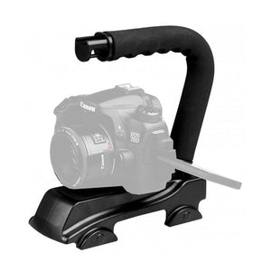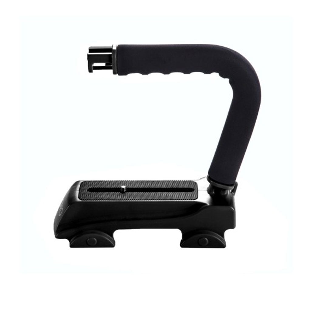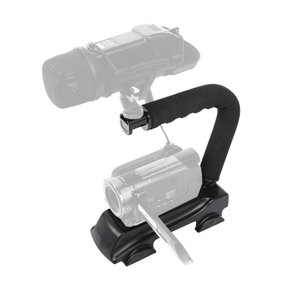 Maniglia handler per l' uso di fotocamere e videocamere di piccole dimensioni. Permette di impugnare la fotocamera evitando vibrazioni ed ottenendo un buon effetto di stabilizzazione. Perfetta anche per le inquadrature dal basso con l' uso di una sola mano. Una hot shoe frontale superiore permette di supportare sia monitor che illuminatori che qualsiasi accessorio avente una slitta di aggancio.