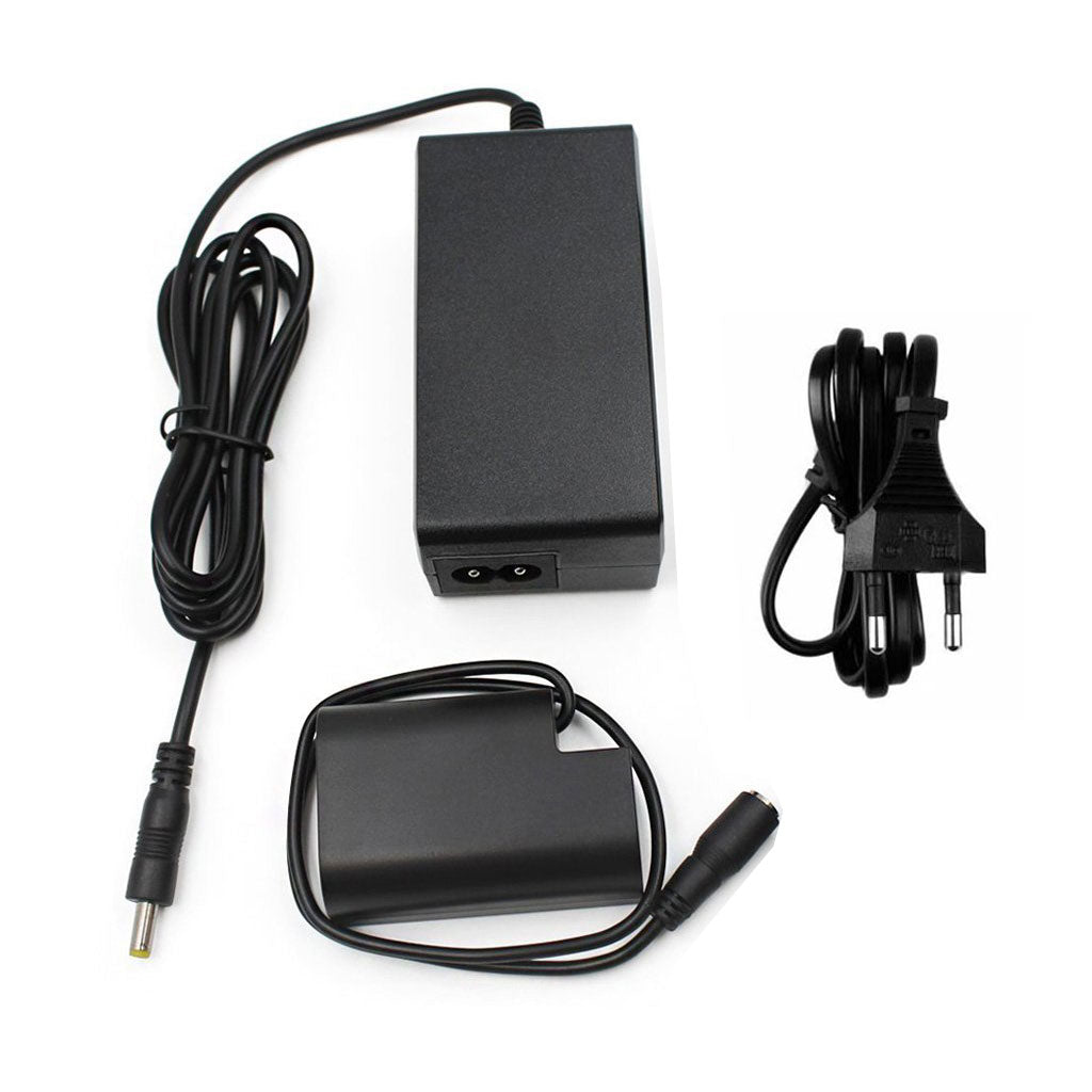 Il prodotto è composto da un trasformatore dotato di un cavo con, al terminale, una finta batteria per la fotocamera; in questo modo, basterà inserire la finta batteria all'interno del relativo vano, far passare il cavo tramite la fessura apposita (di solito coperta da un gommino) e collegare il trasformatore alla rete, tramite il cavo in dotazione.