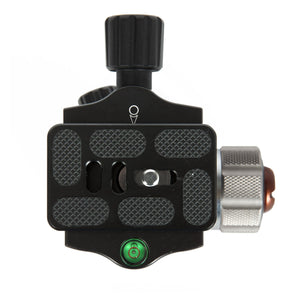 - Piastra a sgancio rapido di tipo Arca-Swiss con vite da 1/4", compatibile con tutte le camere e gli accessori fotografici con tale filettatura femmina;