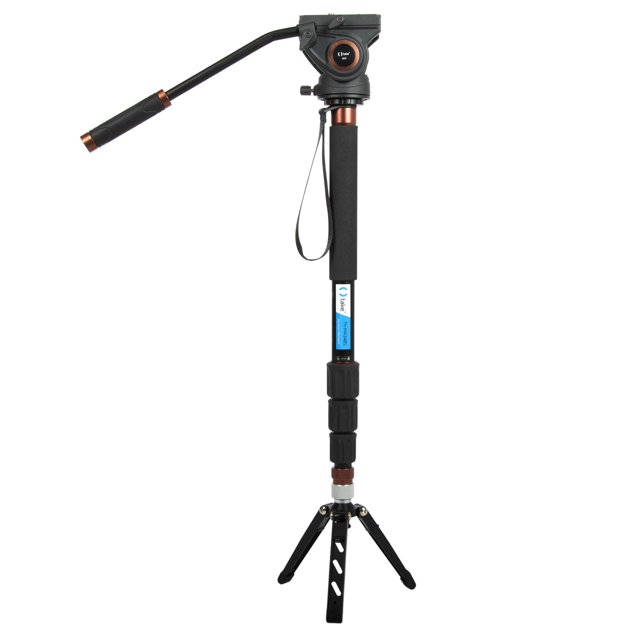 Take TK-MA340SHV3 Kit Monopiede con Piedini per Maggiore Stabilita' con Testa Fluida TK-HV3, Alluminio