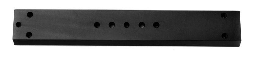 Barra a coda di rondine Vixen in alluminio, anodizzata nera. Sulla barra sono presenti 2 fori passanti e 8 filettati